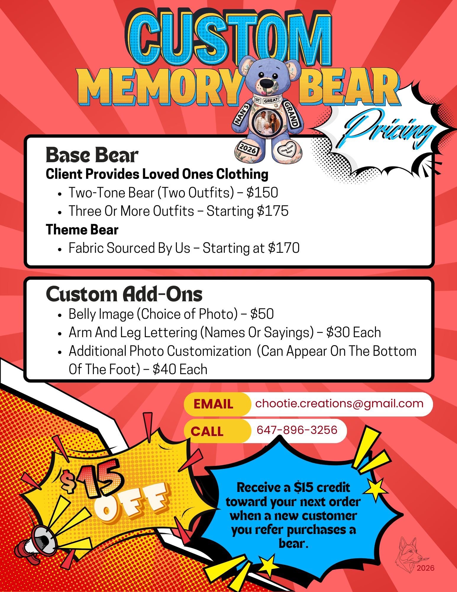 “The Memory Bear I ordered was beautifully crafted and brought tears of joy to my family. Thank you, Chootie Creations!”